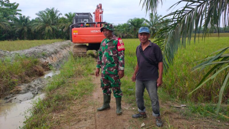 Babinsa Koramil 09/NL, Serda Suyatno, melaksanakan pendampingan kegiatan normalisasi saluran air di lahan persawahan Hanpang, Desa Sei Kasih, Kecamatan Bilah Hilir, Kabupaten Labuhanbatu, Rabu (13/8/2025).