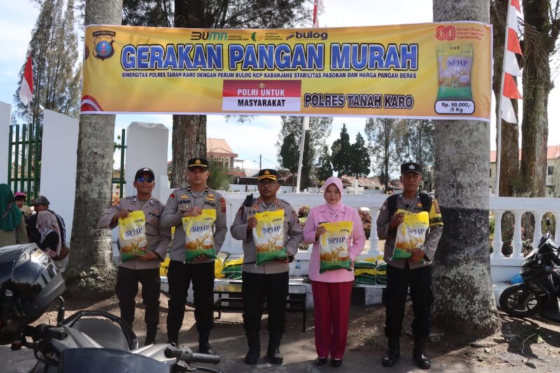 Polres Tanah Karo bersama Perum Bulog KCP Kabanjahe menggelar Gerakan Pangan Murah dalam rangka menjaga stabilitas pasokan dan harga beras, Kamis (14/8) pukul 10.00 WIB di depan Makam Pahlawan Kabanjahe, Jl. Veteran, Kabupaten Karo.
