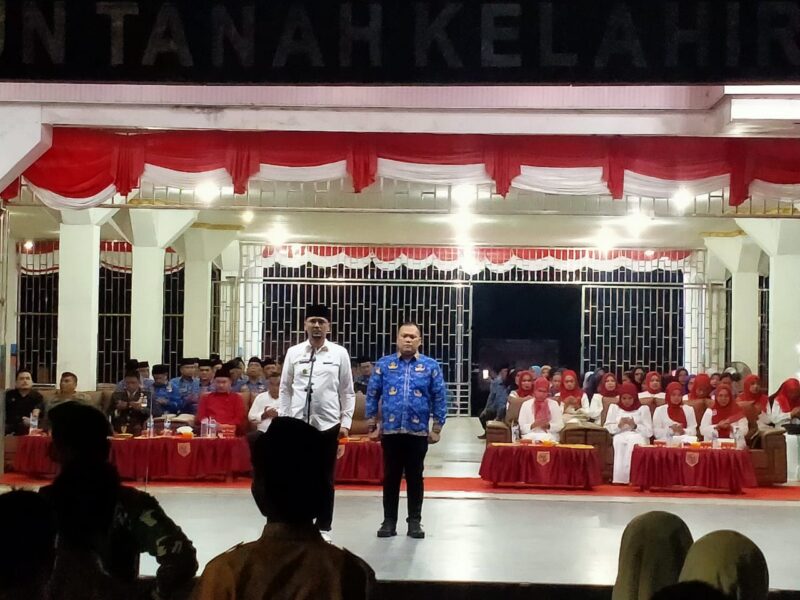 Danramil 11/KP Mayor Inf Hendra Gunawan mewakili Dandim 0209/ LB hadiri kegiatan upacara Taptu dan pawai obor dalam rangka memperingati HUT RI ke 80 tingkat Kabupaten di Lapangan SBBK Kelurahan Kotapinang Kecamatan Kotapinang Kabupaten Labuhanbatu Selatan pada 16/08/2025.