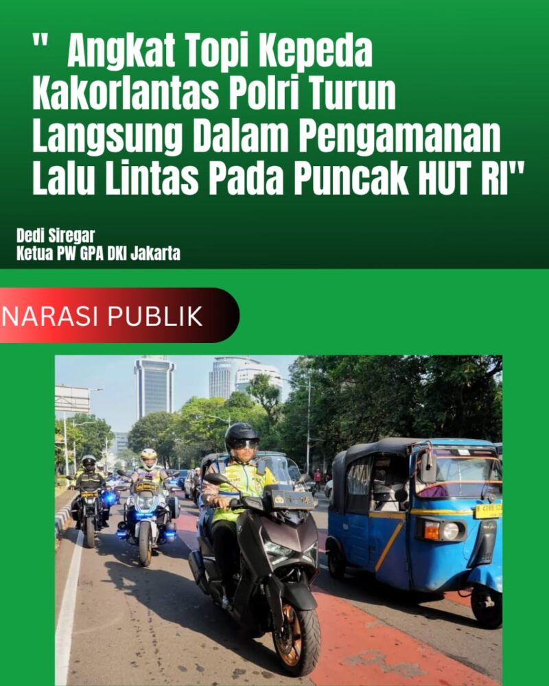 PW GPA DKI JAKARTA : Salut Dengan Kakorlantas Polri Rela Berjibaku Dalam Pengamanan HUT Kemerdekaan RI ke-80 Tahun