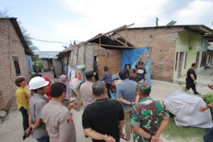 Dilokasi, pada sekira pukul 11.00 WIB Forkopimda Sergai dan Forkopimcam Telukmengkudu melaksanakan kegiatan membersihkan puing-puing dan material lokasi rumah warga masyarakat, pasca hujan deras disertai angin puting beliung di wilayah hukum Polsek Telukmengkudu yang terjadi pada Jumat (22/08/2025) sekitar pukul 19.30 WIB.