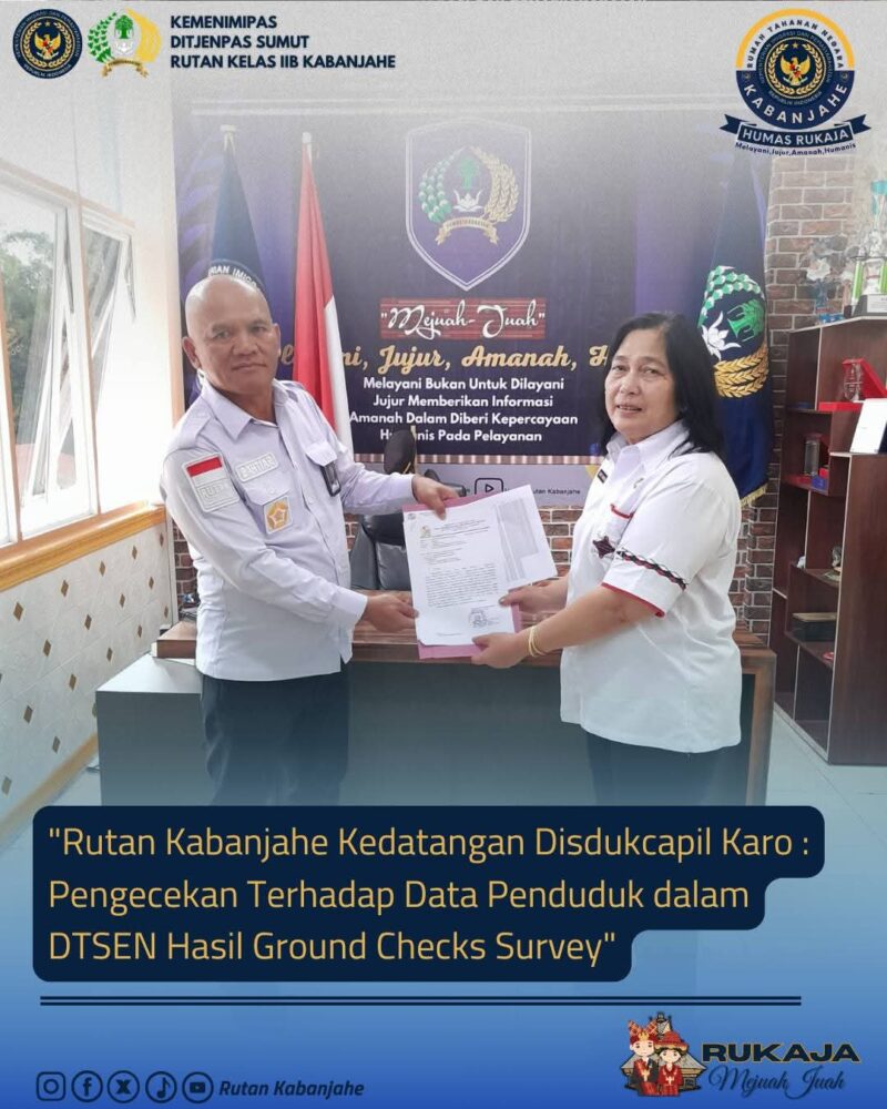 Dengan adanya sinergi antara Rutan Kabanjahe dan Disdukcapil Karo, diharapkan validitas data kependudukan semakin terjamin dan seluruh warga binaan dapat tetap tercatat secara resmi sebagai bagian dari masyarakat.