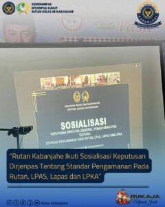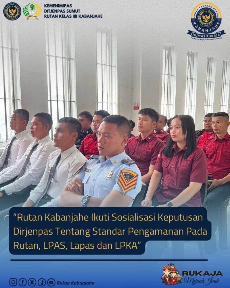 Rumah Tahanan Negara (Rutan) Kelas IIB Kabanjahe mengikuti kegiatan sosialisasi Keputusan Direktur Jenderal Pemasyarakatan (Dirjenpas) tentang Standar Pengamanan pada Rutan, Lembaga Pembinaan Khusus Anak (LPKA), Lembaga Pemasyarakatan (Lapas), dan Lembaga Penempatan Anak Sementara (LPAS), Kamis (28/08) pukul 09.00 WIB.