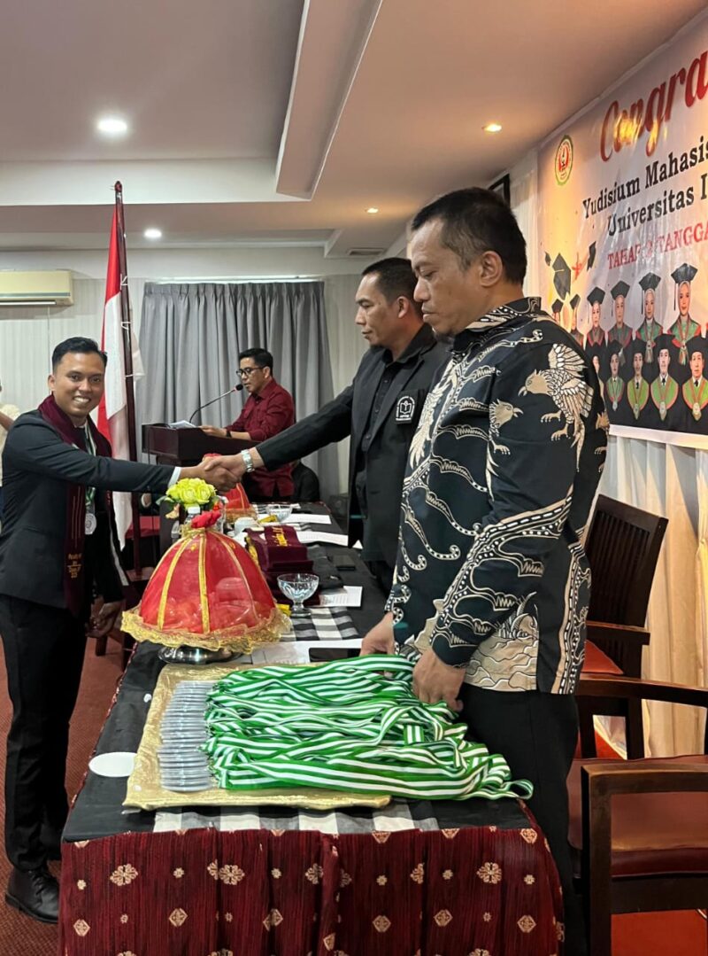 Dalam sambutannya, Ketua Panitia Yudisium, Andrian Maulana, menyampaikan ucapan selamat dan apresiasi kepada seluruh mahasiswa yang berhasil menuntaskan studi. Ia menekankan bahwa gelar sarjana hukum tidak hanya membawa kebanggaan, tetapi juga tanggung jawab besar untuk menegakkan keadilan dan kebenaran.