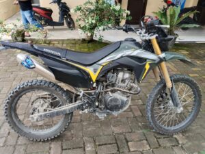 Lanjutnya lagi, berkat hasil kerja keras Tim, kini HA alias H alias K beserta barang bukti 1 Unit sepeda motor CRF warna Hitam tanpa plat nopol berhasil diamankan. Atas peristiwa ini terduga pelaku terancam Pasal 365 ayat (3) ke-1, dan ke-2 dari KUHPidana dengan ancaman penjara 12 Tahun, paparnya.