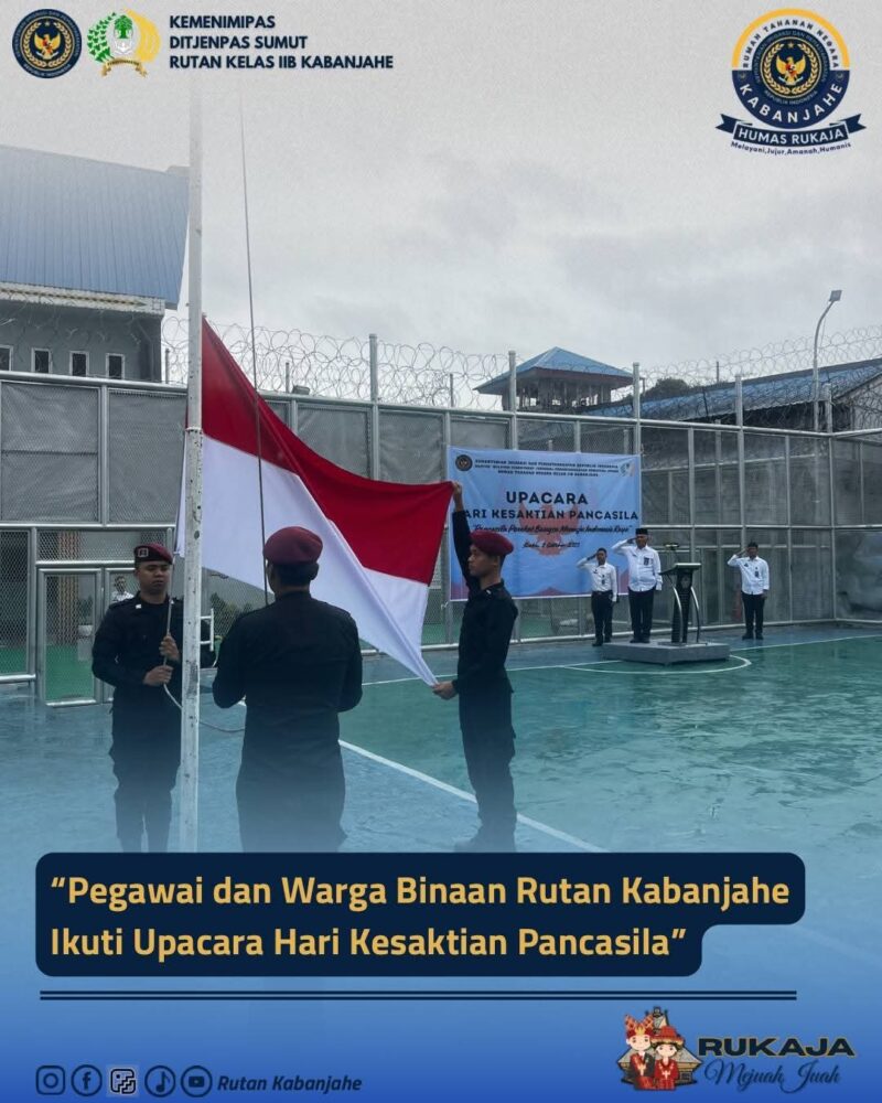 Dalam rangka memperingati Hari Kesaktian Pancasila yang jatuh pada tanggal 1 Oktober 2025, Rumah Tahanan Negara (Rutan) Kabanjahe menggelar upacara bersama yang diikuti oleh seluruh pegawai dan warga binaan. Kegiatan ini berlangsung khidmat di lapangan Rutan Kabanjahe dengan mengusung tema “Pancasila Perekat Bangsa Menuju Indonesia Raya”