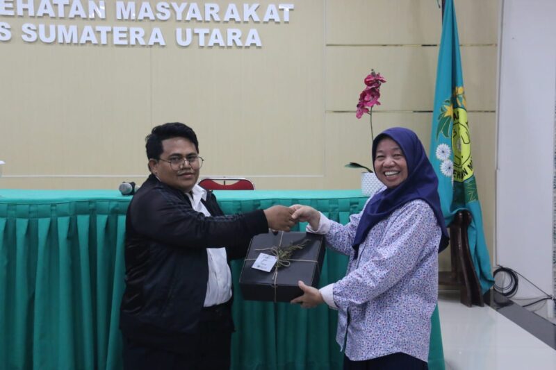 Penghargaan diserahkan langsung oleh Wakil Dekan I FKM USU, Dr. Umi Salmah, SKM., M.Kes., sementara pemenang kedua menerima hadiah dari Wakil Dekan II, Ir. Indra Chahaya S., M.Si.