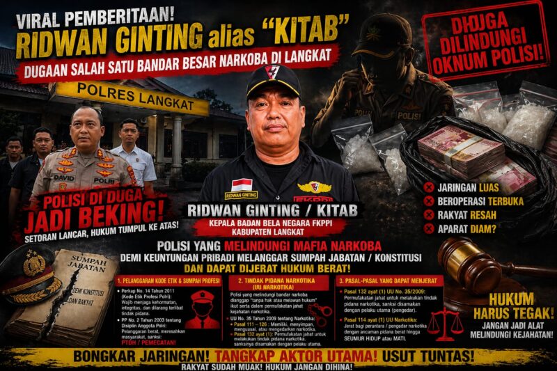 Detiktimur.net Langkat – Pemberitaan terkait sosok Ridwan Ginting alias “KITAB” yang diduga sebagai salah satu bandar besar narkoba di Kabupaten Langkat kini viral dan menjadi perbincangan luas di media sosial. Isu ini tidak hanya menyedot perhatian publik, tetapi juga memantik gelombang kritik tajam yang diarahkan kepada aparat penegak hukum.