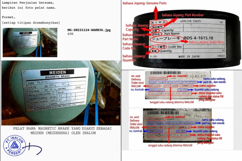 Bahkan lanjutnya, melalui komunikasi email dengan surat, disebutkan bahwa ‘name plate’ yang digunakan unit pada barang tersebut juga diduga palsu. Maka, ungkap Sunaryo, terbukti bahwa barang yang digunakan dan diakui sebagai Meidensha oleh PT Inalum adalah tidak asli atau diduga palsu.