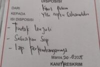 Detiktimur.net Maros – Laporan resmi yang diajukan Kasra ke Polres Maros kini mendapatkan tindak lanjut nyata. Hal tersebut dibuktikan dengan terbitnya disposisi dari Kanit…